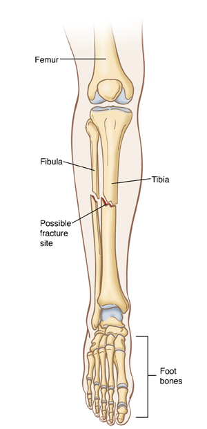 The leg or foot may be put into a splint, cast, or special boot. This holds the bone in place while it heals. A severe fracture may need surgery.