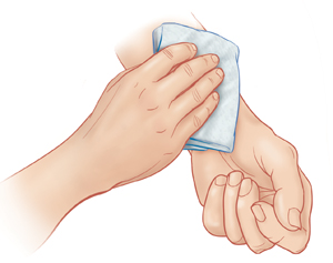 Press gently with your fingertips only on the area that is bleeding. Hold your fingers there for 30 minutes. Don't press on the whole forearm. Don't wrap anything around the wrist or arm, including bandages.